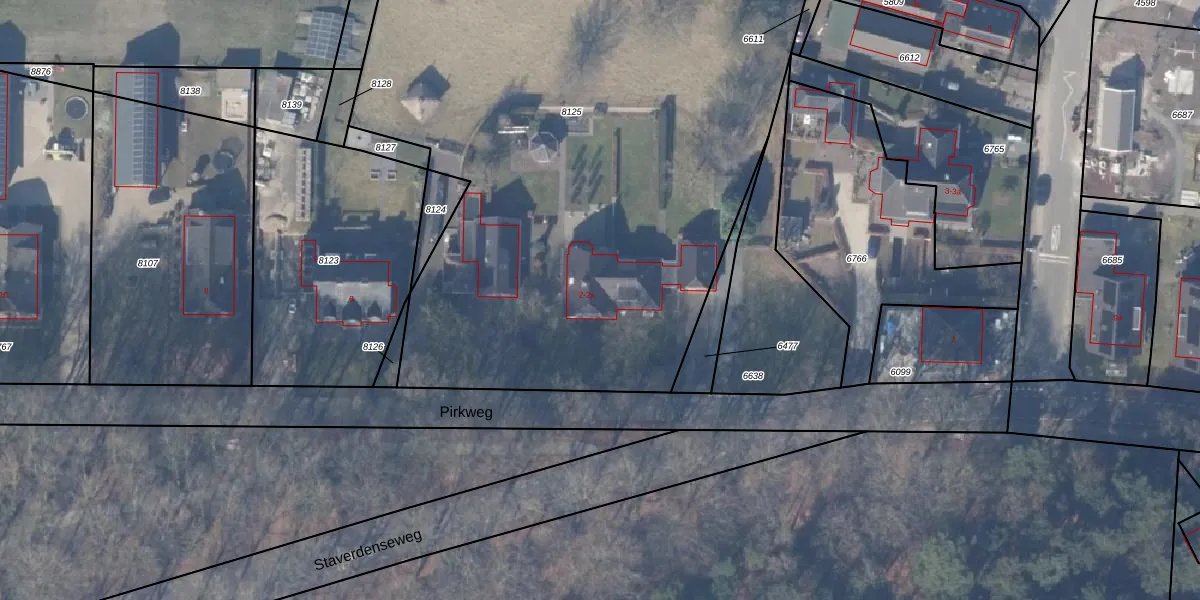 Het perceel waarop Pirkweg 2 staat heeft een oppervlakte van 4992 m². Dit is een zeer groot perceel. De perceeloppervlakte wordt geregistreerd door het Kadaster. Gedetailleerde informatie over de maten van dit perceel kunt u vinden in het rapport Kadastrale kaart met maatvoering van Pirkweg 2.