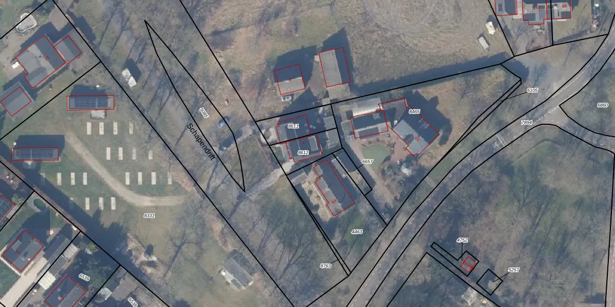 Gebruik de zoekbalk of klik op een perceel voor informatie over de adressen binnen dit perceel.