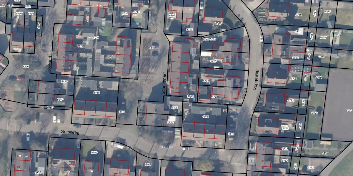 Het perceel waarop Schovenerf 6 staat heeft een oppervlakte van 652 m². Dit is een groot perceel. De perceeloppervlakte wordt geregistreerd door het Kadaster. Gedetailleerde informatie over de maten van dit perceel kunt u vinden in het rapport Kadastrale kaart met maatvoering van Schovenerf 6.