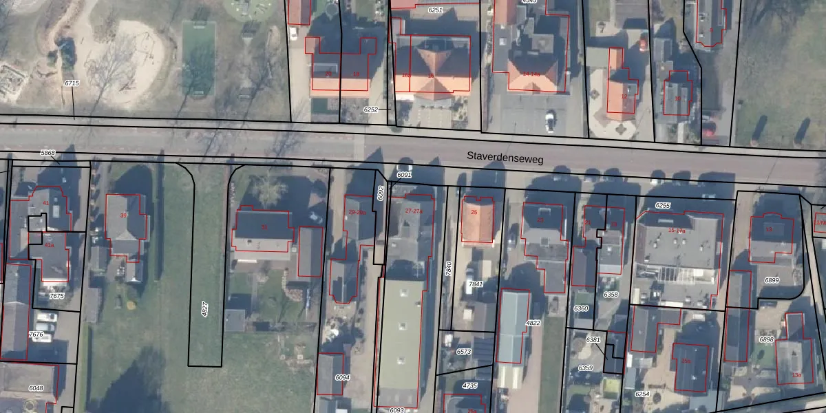 Het perceel waarop Staverdenseweg 27 staat heeft een oppervlakte van 990 m². Dit is een groot perceel. De perceeloppervlakte wordt geregistreerd door het Kadaster. Gedetailleerde informatie over de maten van dit perceel kunt u vinden in het rapport Kadastrale kaart met maatvoering van Staverdenseweg 27.