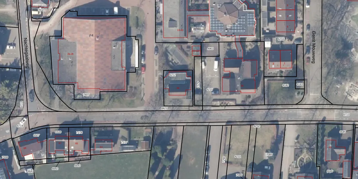 Gebruik de zoekbalk of klik op een perceel voor informatie over de adressen binnen dit perceel.