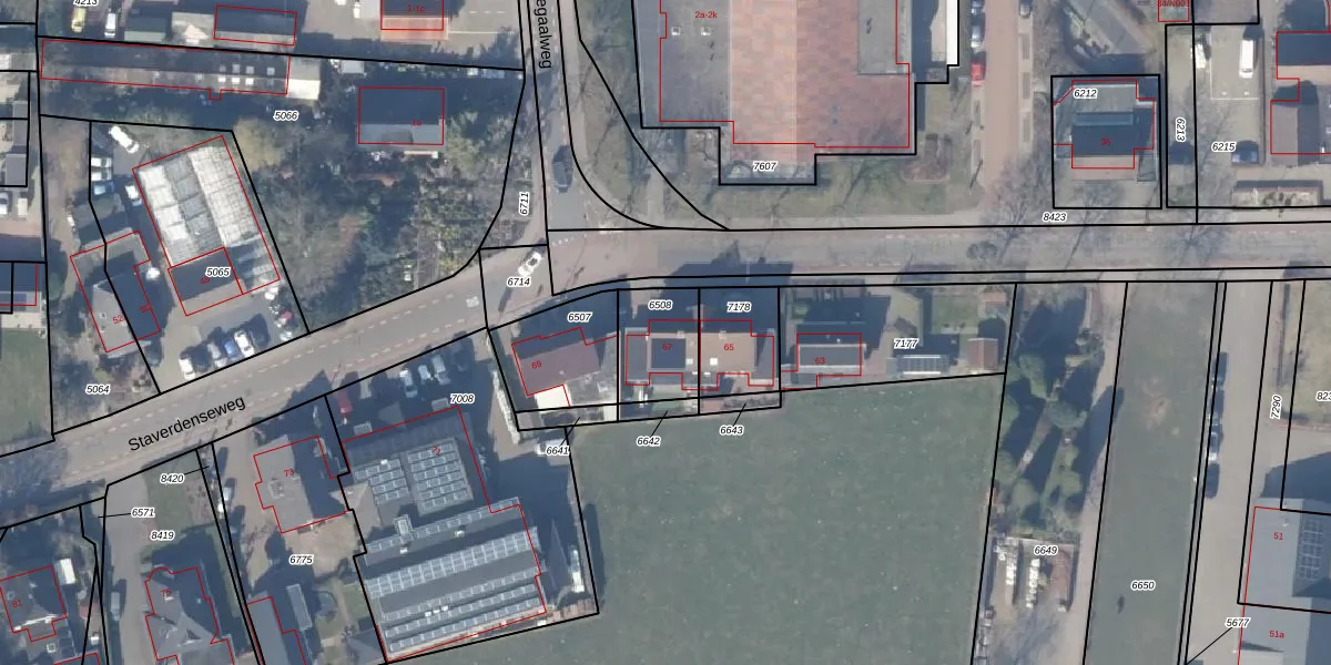 Het perceel waarop Staverdenseweg 67 staat heeft een oppervlakte van 215 m². Dit is een middelgroot perceel. De perceeloppervlakte wordt geregistreerd door het Kadaster. Gedetailleerde informatie over de maten van dit perceel kunt u vinden in het rapport Kadastrale kaart met maatvoering van Staverdenseweg 67.