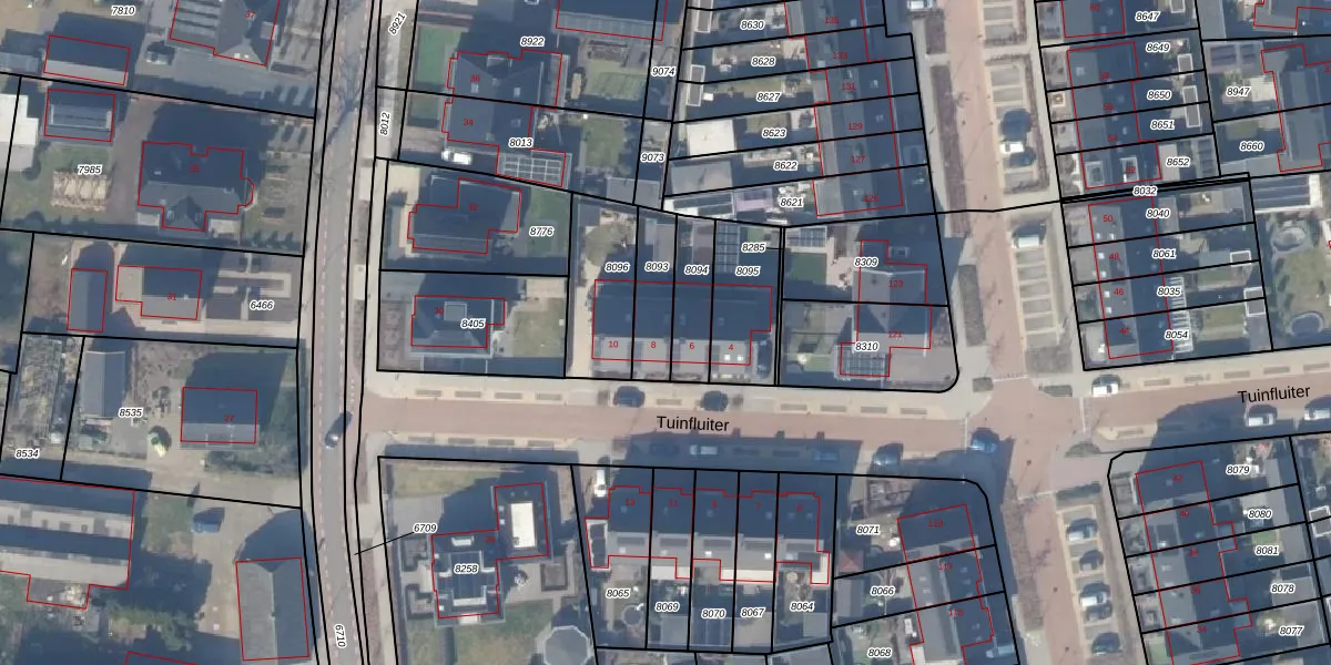 Gebruik de zoekbalk of klik op een perceel voor informatie over de adressen binnen dit perceel.