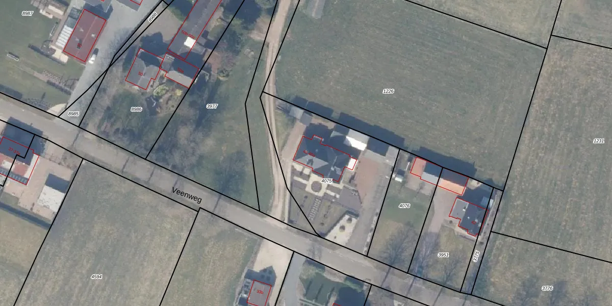 Het perceel waarop Veenweg 46 staat heeft een oppervlakte van 1307 m². Dit is een zeer groot perceel. De perceeloppervlakte wordt geregistreerd door het Kadaster. Gedetailleerde informatie over de maten van dit perceel kunt u vinden in het rapport Kadastrale kaart met maatvoering van Veenweg 46.