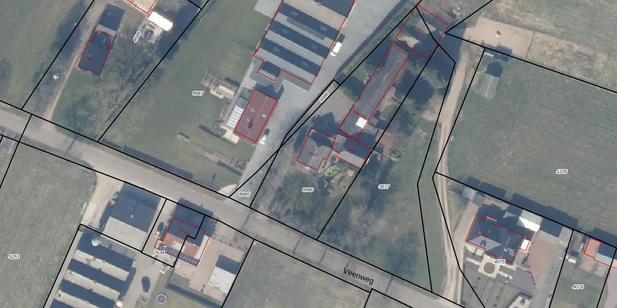 Veenweg 50 is gelegen op kadastraal perceel NST01F8986. Deze kadastrale aanduiding is uniek en wordt gebruikt door het Kadaster om eigendomsrechten en andere zakelijke rechten vast te leggen. Het perceel maakt onderdeel uit van de kadastrale gemeente Nunspeet.