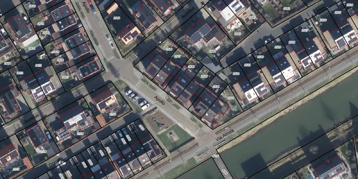 Gebruik de zoekbalk of klik op een perceel voor informatie over de adressen binnen dit perceel.