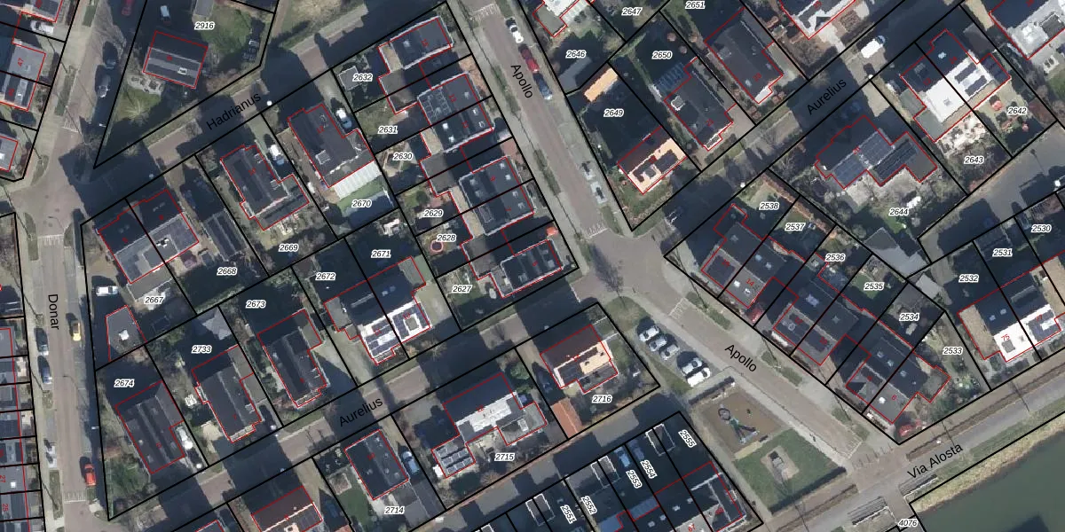Gebruik de zoekbalk of klik op een perceel voor informatie over de adressen binnen dit perceel.