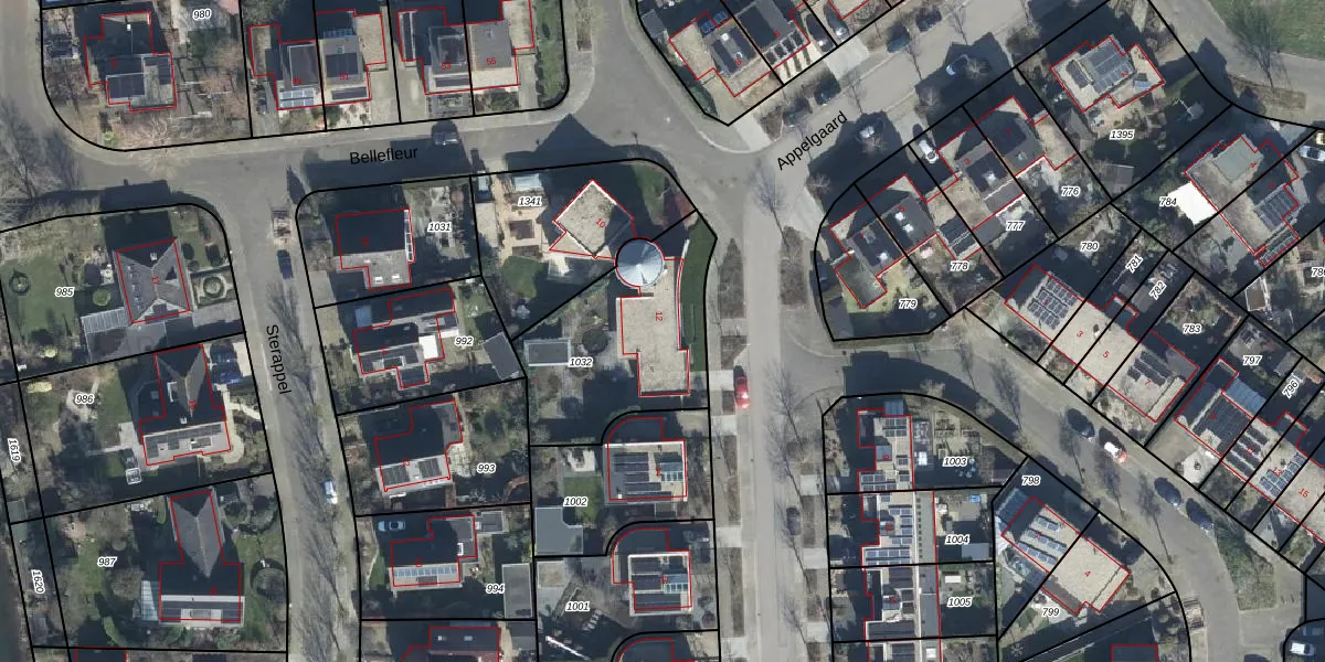 Het perceel waarop Appelgaard 12 staat heeft een oppervlakte van 675 m². Dit is een groot perceel. De perceeloppervlakte wordt geregistreerd door het Kadaster. Gedetailleerde informatie over de maten van dit perceel kunt u vinden in het rapport Kadastrale kaart met maatvoering van Appelgaard 12.