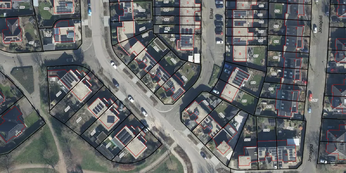 Gebruik de zoekbalk of klik op een perceel voor informatie over de adressen binnen dit perceel.