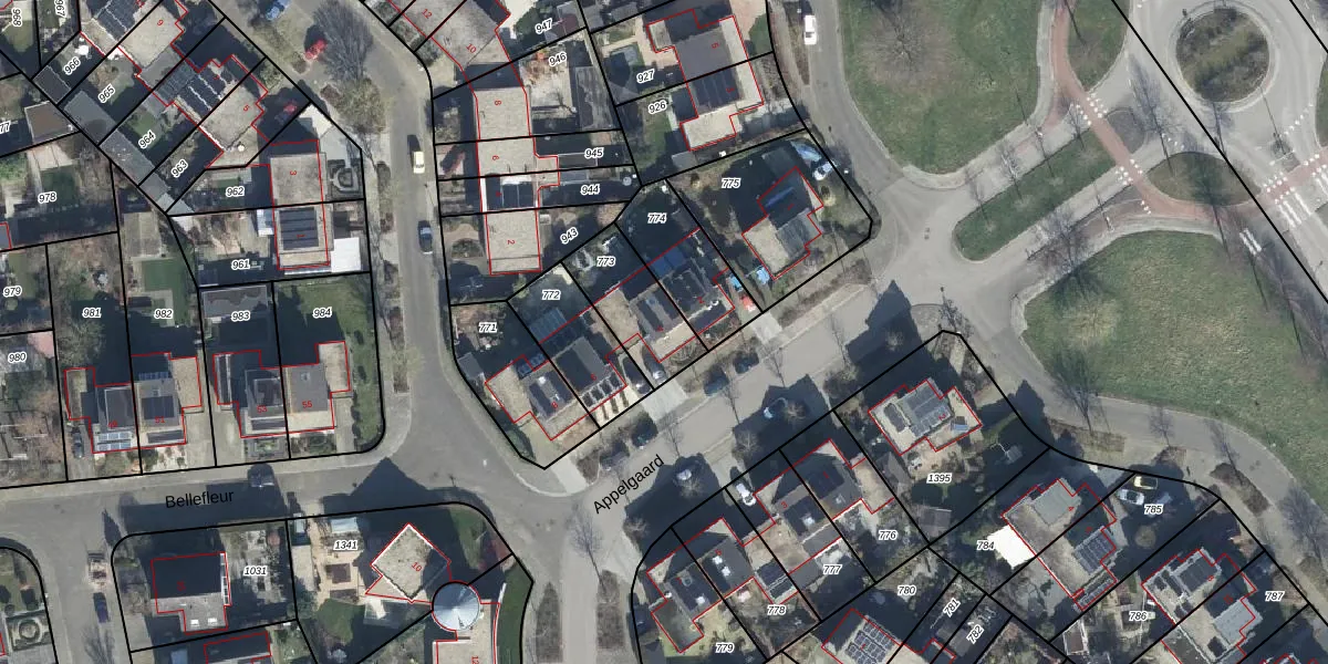 Het perceel waarop Appelgaard 4 staat heeft een oppervlakte van 242 m². Dit is een middelgroot perceel. De perceeloppervlakte wordt geregistreerd door het Kadaster. Gedetailleerde informatie over de maten van dit perceel kunt u vinden in het rapport Kadastrale kaart met maatvoering van Appelgaard 4.