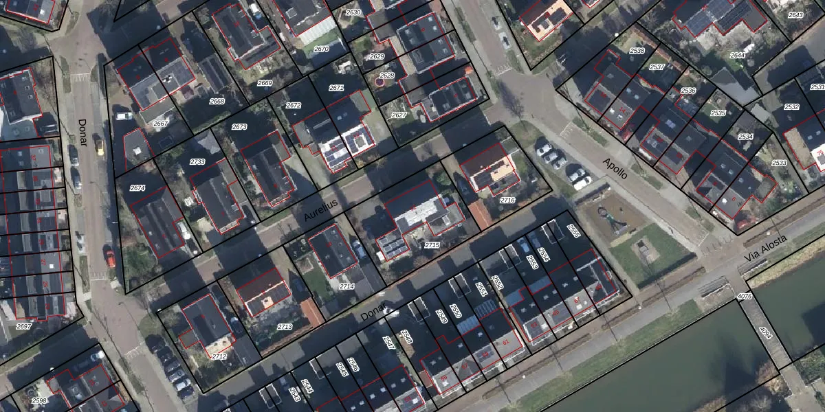 Gebruik de zoekbalk of klik op een perceel voor informatie over de adressen binnen dit perceel.