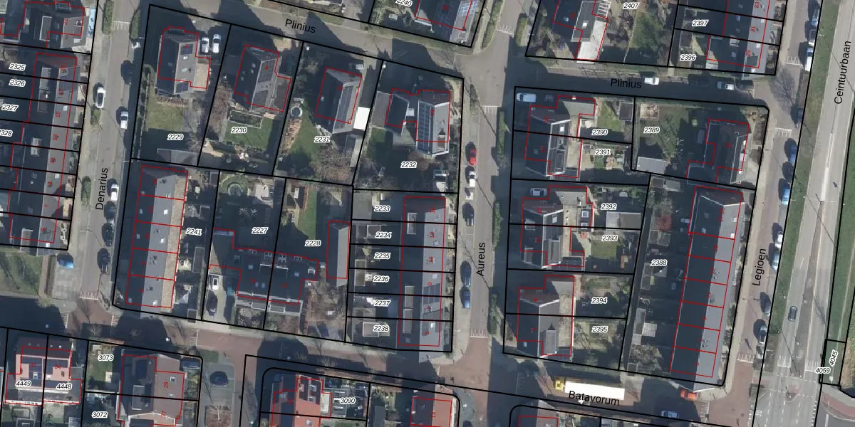 Gebruik de zoekbalk of klik op een perceel voor informatie over de adressen binnen dit perceel.