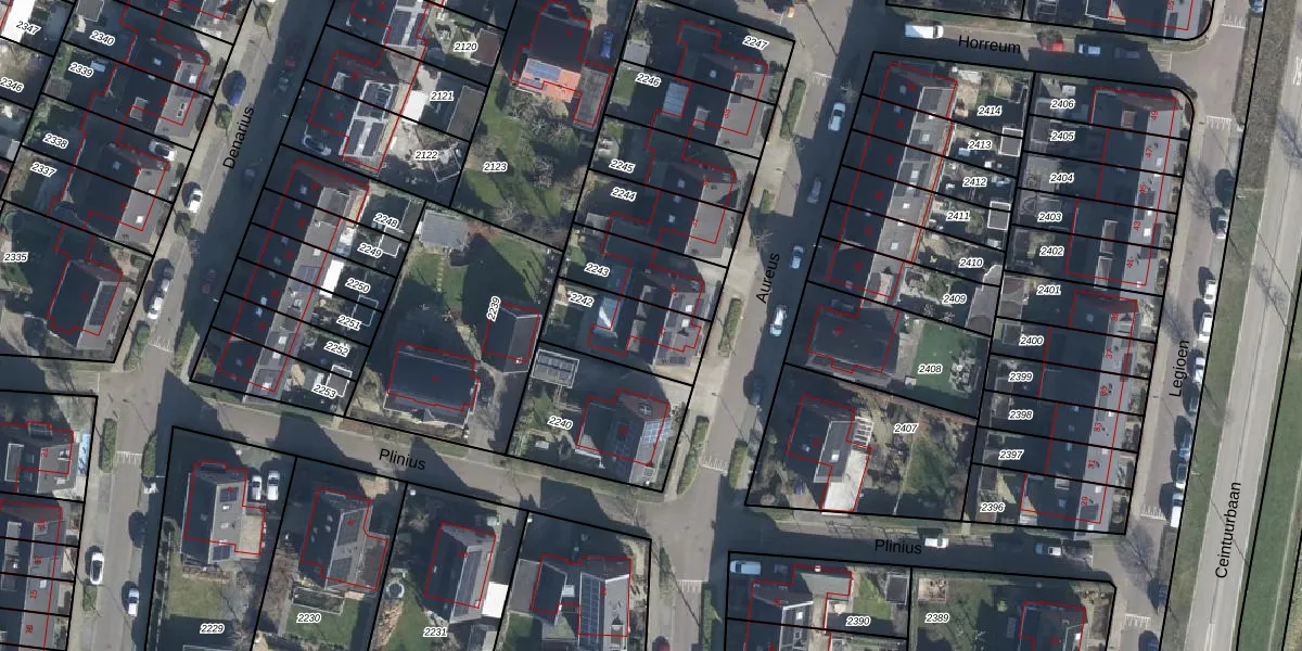 Gebruik de zoekbalk of klik op een perceel voor informatie over de adressen binnen dit perceel.