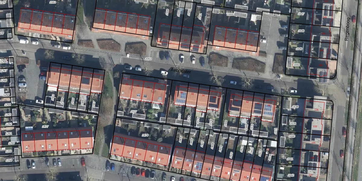 Gebruik de zoekbalk of klik op een perceel voor informatie over de adressen binnen dit perceel.