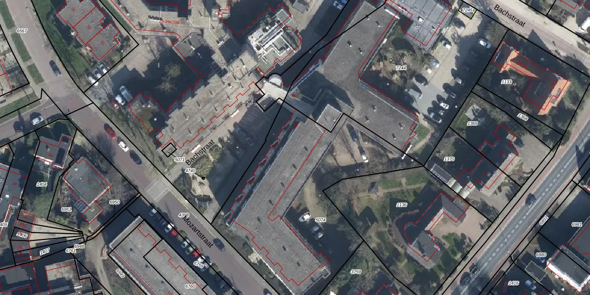 Het perceel waarop Bachstraat 21-a staat heeft een oppervlakte van 2330 m². Dit is een zeer groot perceel. De perceeloppervlakte wordt geregistreerd door het Kadaster. Gedetailleerde informatie over de maten van dit perceel kunt u vinden in het rapport Kadastrale kaart met maatvoering van Bachstraat 21-a.