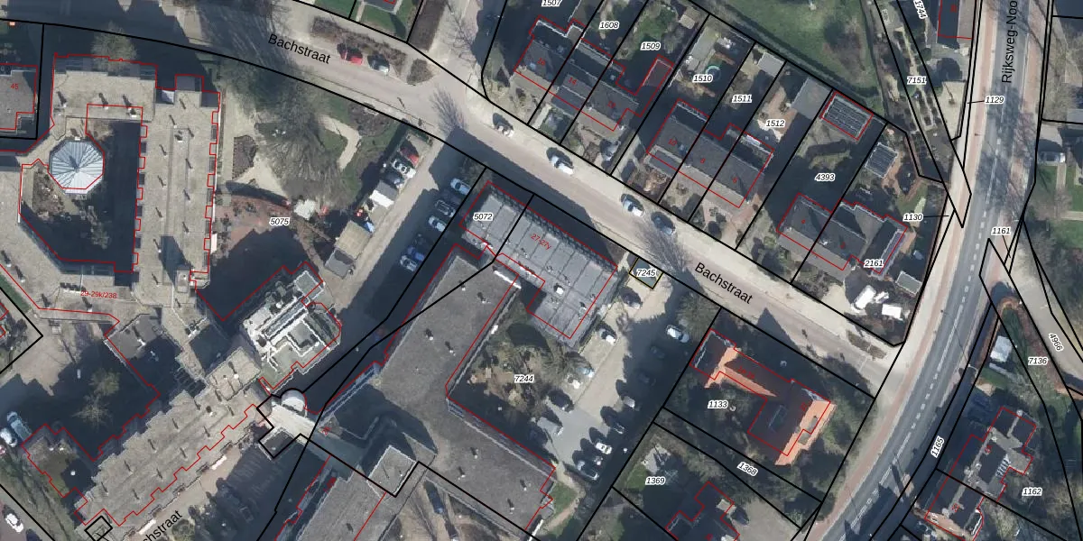 Het perceel waarop Bachstraat 27-h staat heeft een oppervlakte van 2573 m². Dit is een zeer groot perceel. De perceeloppervlakte wordt geregistreerd door het Kadaster. Gedetailleerde informatie over de maten van dit perceel kunt u vinden in het rapport Kadastrale kaart met maatvoering van Bachstraat 27-h.