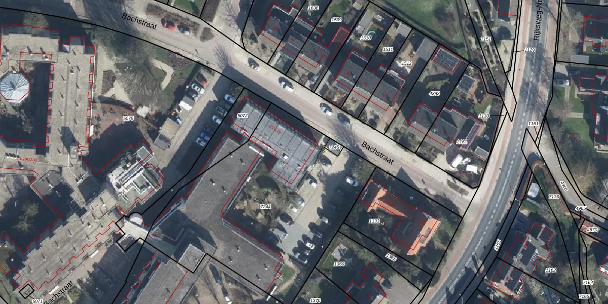 Het perceel waarop Bachstraat 27-m staat heeft een oppervlakte van 2573 m². Dit is een zeer groot perceel. De perceeloppervlakte wordt geregistreerd door het Kadaster. Gedetailleerde informatie over de maten van dit perceel kunt u vinden in het rapport Kadastrale kaart met maatvoering van Bachstraat 27-m.