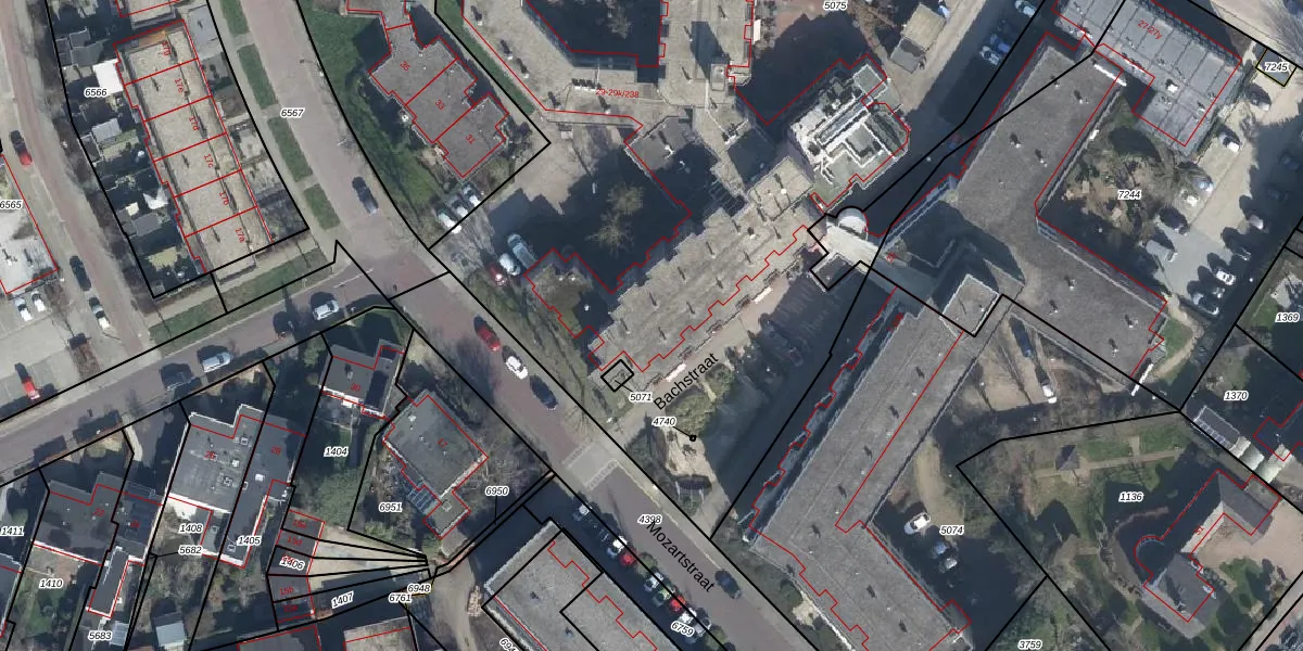 Het perceel waarop Bachstraat 29-k-021 staat heeft een oppervlakte van 6556 m². Dit is een zeer groot perceel. De perceeloppervlakte wordt geregistreerd door het Kadaster. Gedetailleerde informatie over de maten van dit perceel kunt u vinden in het rapport Kadastrale kaart met maatvoering van Bachstraat 29-k-021.