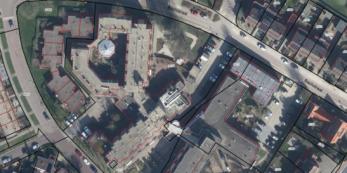 Het perceel waarop Bachstraat 29-k-111 staat heeft een oppervlakte van 6556 m². Dit is een zeer groot perceel. De perceeloppervlakte wordt geregistreerd door het Kadaster. Gedetailleerde informatie over de maten van dit perceel kunt u vinden in het rapport Kadastrale kaart met maatvoering van Bachstraat 29-k-111.