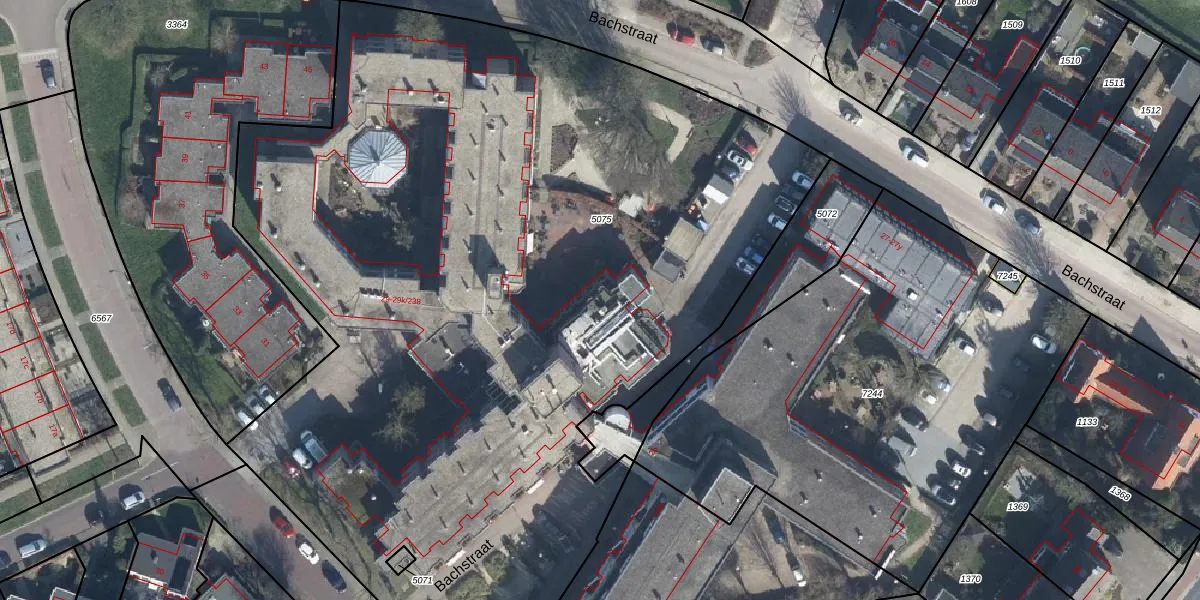 Het perceel waarop Bachstraat 29-k-211 staat heeft een oppervlakte van 6556 m². Dit is een zeer groot perceel. De perceeloppervlakte wordt geregistreerd door het Kadaster. Gedetailleerde informatie over de maten van dit perceel kunt u vinden in het rapport Kadastrale kaart met maatvoering van Bachstraat 29-k-211.