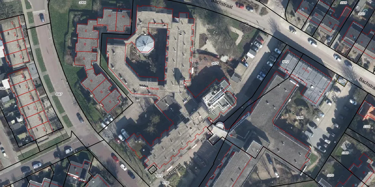 Het perceel waarop Bachstraat 29-k-238 staat heeft een oppervlakte van 6556 m². Dit is een zeer groot perceel. De perceeloppervlakte wordt geregistreerd door het Kadaster. Gedetailleerde informatie over de maten van dit perceel kunt u vinden in het rapport Kadastrale kaart met maatvoering van Bachstraat 29-k-238.