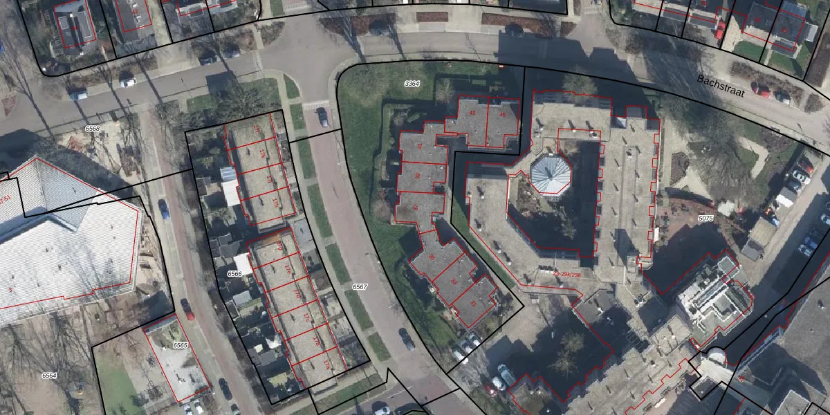Het perceel waarop Bachstraat 37 staat heeft een oppervlakte van 2120 m². Dit is een zeer groot perceel. De perceeloppervlakte wordt geregistreerd door het Kadaster. Gedetailleerde informatie over de maten van dit perceel kunt u vinden in het rapport Kadastrale kaart met maatvoering van Bachstraat 37.
