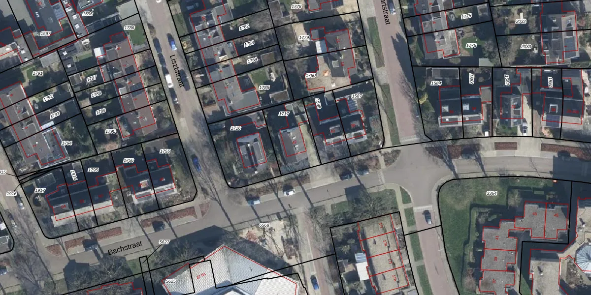 Gebruik de zoekbalk of klik op een perceel voor informatie over de adressen binnen dit perceel.