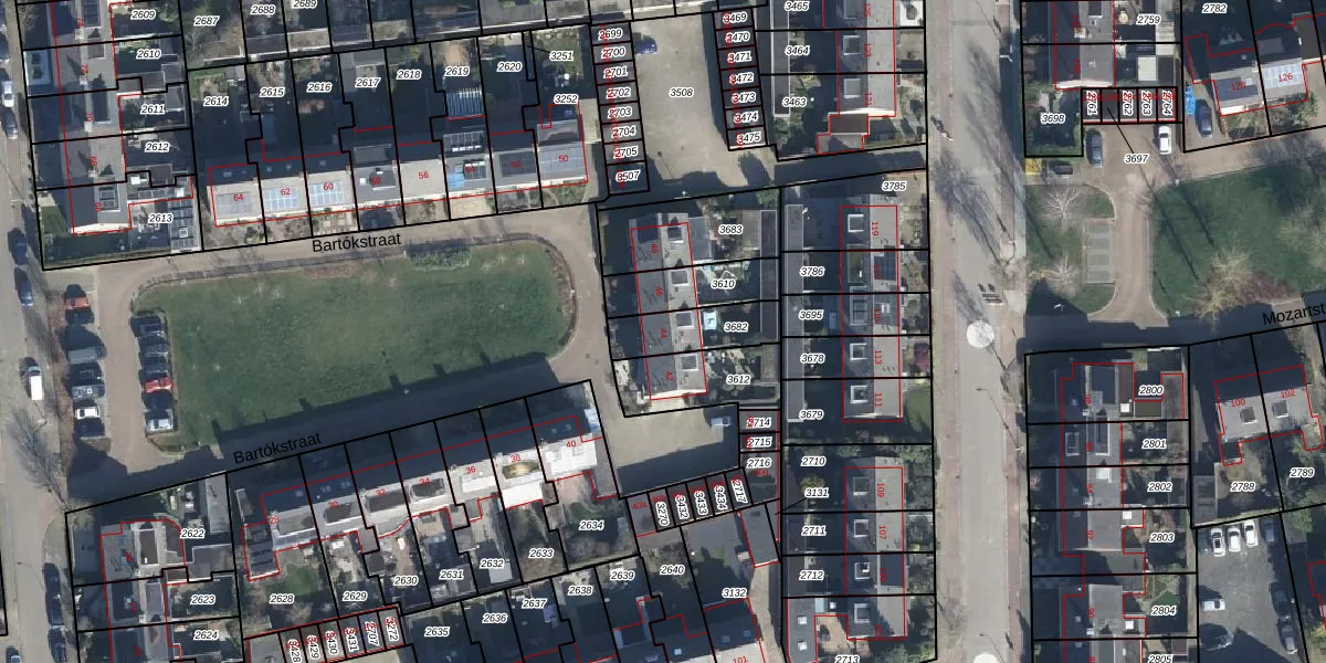 Gebruik de zoekbalk of klik op een perceel voor informatie over de adressen binnen dit perceel.
