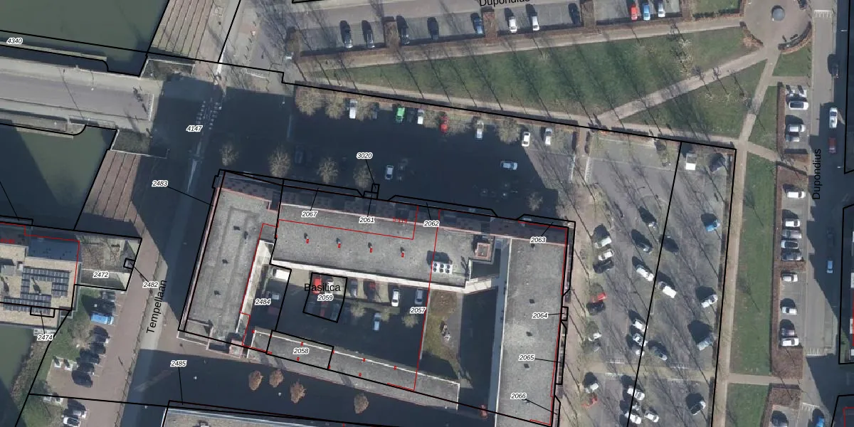 Het perceel waarop Basilica 105 staat heeft een oppervlakte van 2732 m². Dit is een zeer groot perceel. De perceeloppervlakte wordt geregistreerd door het Kadaster. Gedetailleerde informatie over de maten van dit perceel kunt u vinden in het rapport Kadastrale kaart met maatvoering van Basilica 105.