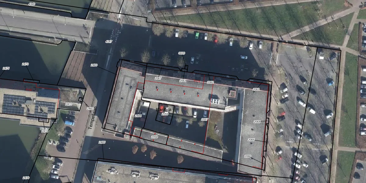 Het perceel waarop Basilica 13 staat heeft een oppervlakte van 2732 m². Dit is een zeer groot perceel. De perceeloppervlakte wordt geregistreerd door het Kadaster. Gedetailleerde informatie over de maten van dit perceel kunt u vinden in het rapport Kadastrale kaart met maatvoering van Basilica 13.