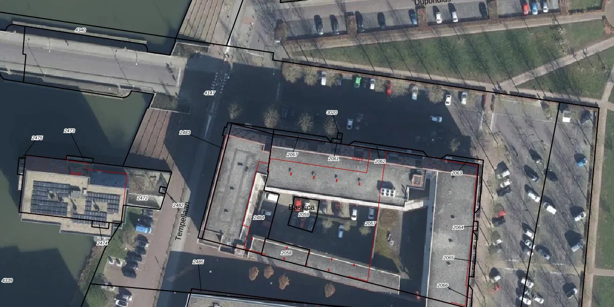 Het perceel waarop Basilica 67 staat heeft een oppervlakte van 2732 m². Dit is een zeer groot perceel. De perceeloppervlakte wordt geregistreerd door het Kadaster. Gedetailleerde informatie over de maten van dit perceel kunt u vinden in het rapport Kadastrale kaart met maatvoering van Basilica 67.