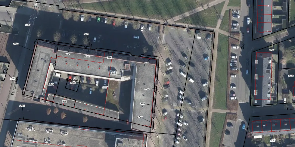 Het perceel waarop Basilica 79 staat heeft een oppervlakte van 2732 m². Dit is een zeer groot perceel. De perceeloppervlakte wordt geregistreerd door het Kadaster. Gedetailleerde informatie over de maten van dit perceel kunt u vinden in het rapport Kadastrale kaart met maatvoering van Basilica 79.