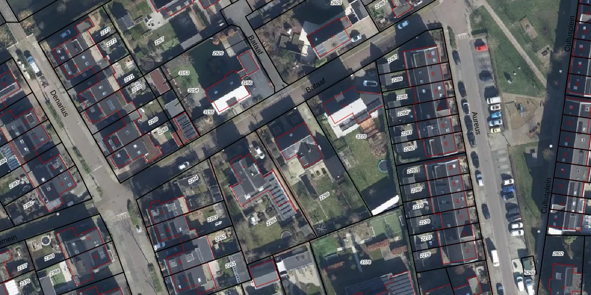 Het perceel waarop Bataaf 8 staat heeft een oppervlakte van 863 m². Dit is een groot perceel. De perceeloppervlakte wordt geregistreerd door het Kadaster. Gedetailleerde informatie over de maten van dit perceel kunt u vinden in het rapport Kadastrale kaart met maatvoering van Bataaf 8.