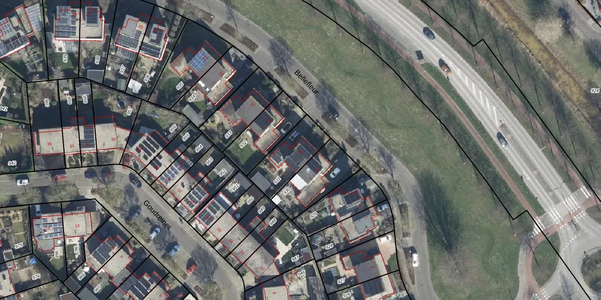 Het perceel waarop Bellefleur 13 staat heeft een oppervlakte van 330 m². Dit is een groot perceel. De perceeloppervlakte wordt geregistreerd door het Kadaster. Gedetailleerde informatie over de maten van dit perceel kunt u vinden in het rapport Kadastrale kaart met maatvoering van Bellefleur 13.