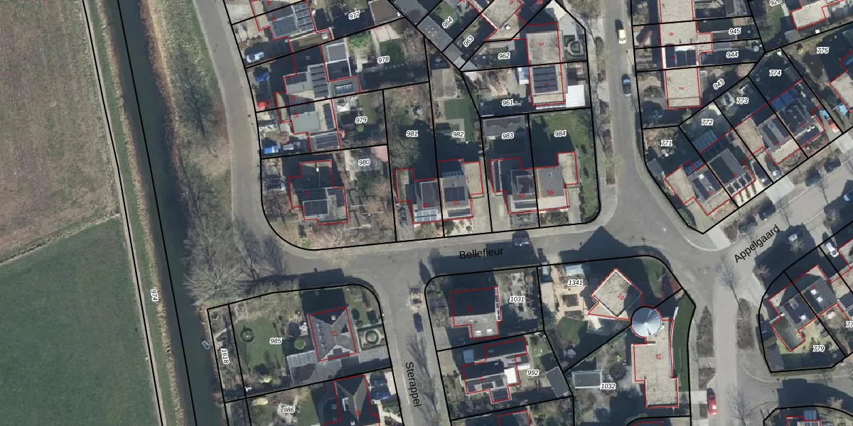 Het perceel waarop Bellefleur 49 staat heeft een oppervlakte van 404 m². Dit is een groot perceel. De perceeloppervlakte wordt geregistreerd door het Kadaster. Gedetailleerde informatie over de maten van dit perceel kunt u vinden in het rapport Kadastrale kaart met maatvoering van Bellefleur 49.