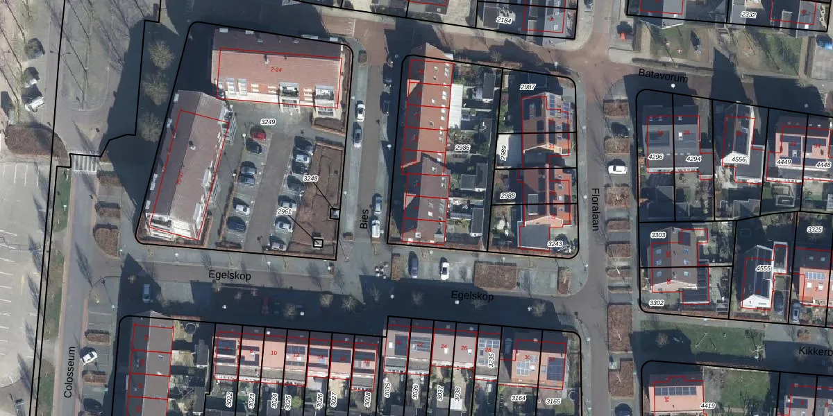 Het adres is gelegen op perceel 2986 in de sectie N en de kadastrale gemeente Elst. De kadastrale aanduiding is aldus ELS00-N-2986. Het perceel is 1083 m² groot. Dat is kleiner dan de gemiddelde perceeloppervlakte in Elst, dat op 2925,13 m² ligt. Het kleinste perceel in de kadastrale gemeente is 0 m² groot. De grootste perceeloppervlakte is 35,2 ha. Op het perceel liggen in totaal 8 adressen. De huidige grenzen van het perceel zijn digitaal in de Basisregistratie Kadaster (BRK) geregistreerd op 02-03-2011.