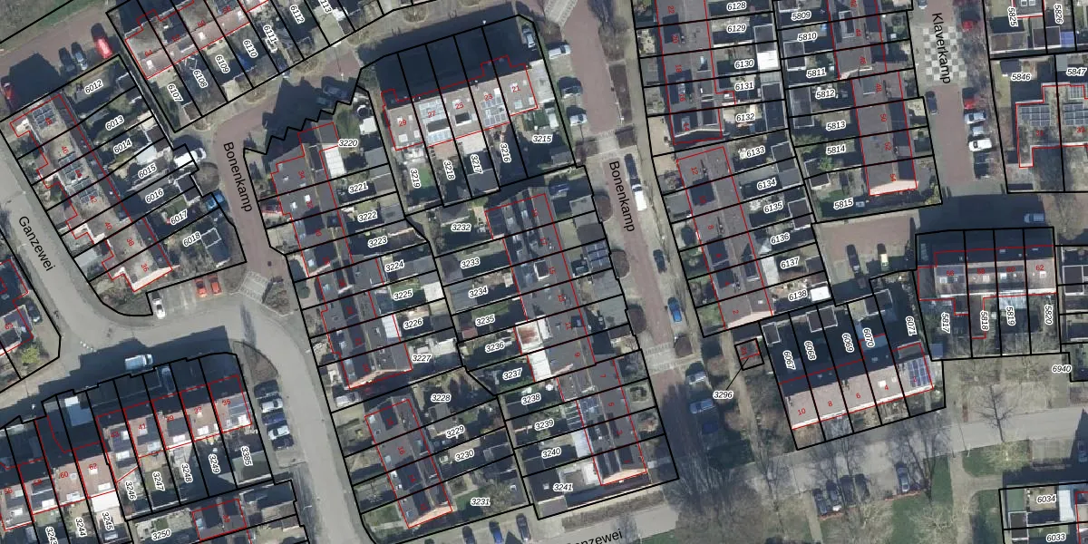 Het perceel waarop Bonenkamp 15 staat heeft een oppervlakte van 170 m². Dit is een middelgroot perceel. De perceeloppervlakte wordt geregistreerd door het Kadaster. Gedetailleerde informatie over de maten van dit perceel kunt u vinden in het rapport Kadastrale kaart met maatvoering van Bonenkamp 15.