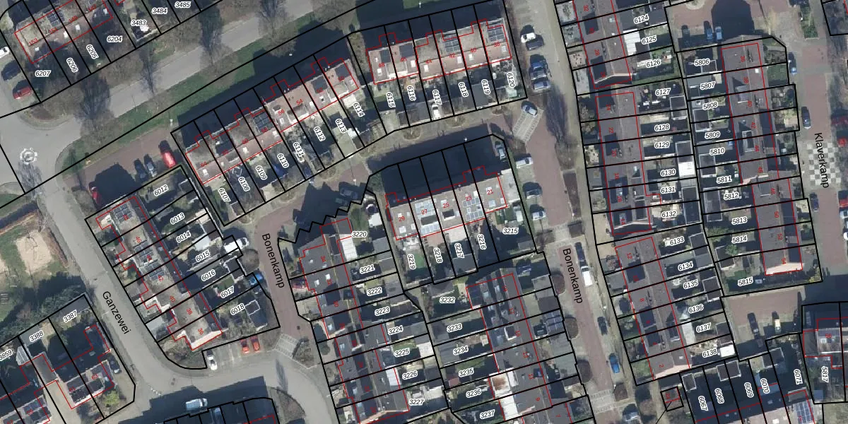 Het perceel waarop Bonenkamp 27 staat heeft een oppervlakte van 162 m². Dit is een middelgroot perceel. De perceeloppervlakte wordt geregistreerd door het Kadaster. Gedetailleerde informatie over de maten van dit perceel kunt u vinden in het rapport Kadastrale kaart met maatvoering van Bonenkamp 27.