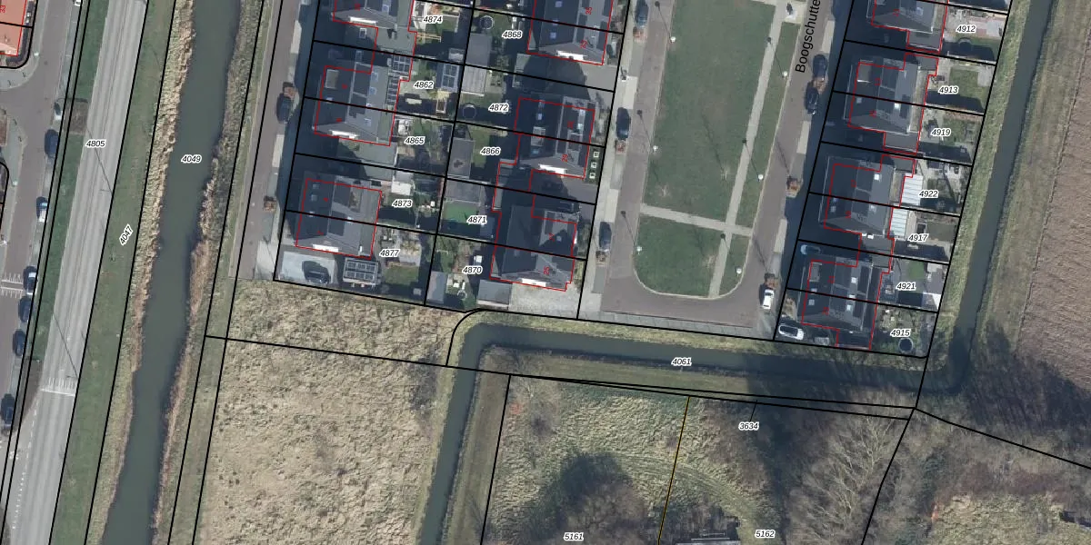 Het perceel waarop Boogschutter 25 staat heeft een oppervlakte van 340 m². Dit is een groot perceel. De perceeloppervlakte wordt geregistreerd door het Kadaster. Gedetailleerde informatie over de maten van dit perceel kunt u vinden in het rapport Kadastrale kaart met maatvoering van Boogschutter 25.