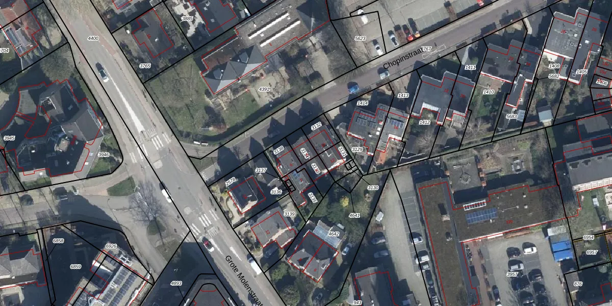 Het perceel waarop Chopinstraat 8 staat heeft een oppervlakte van 65 m². Dit is een klein perceel. De perceeloppervlakte wordt geregistreerd door het Kadaster. Gedetailleerde informatie over de maten van dit perceel kunt u vinden in het rapport Kadastrale kaart met maatvoering van Chopinstraat 8.