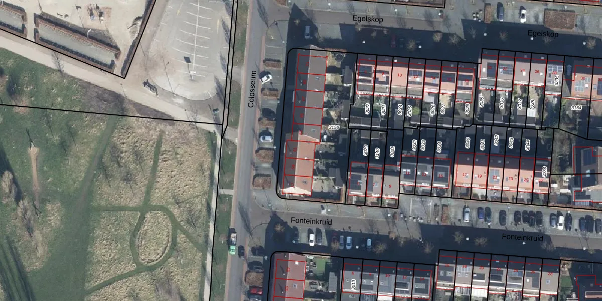 Het perceel waarop Colosseum 61 staat heeft een oppervlakte van 1143 m². Dit is een zeer groot perceel. De perceeloppervlakte wordt geregistreerd door het Kadaster. Gedetailleerde informatie over de maten van dit perceel kunt u vinden in het rapport Kadastrale kaart met maatvoering van Colosseum 61.