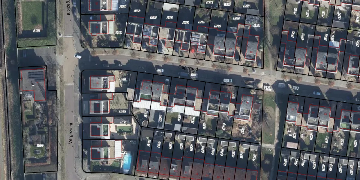 Gebruik de zoekbalk of klik op een perceel voor informatie over de adressen binnen dit perceel.
