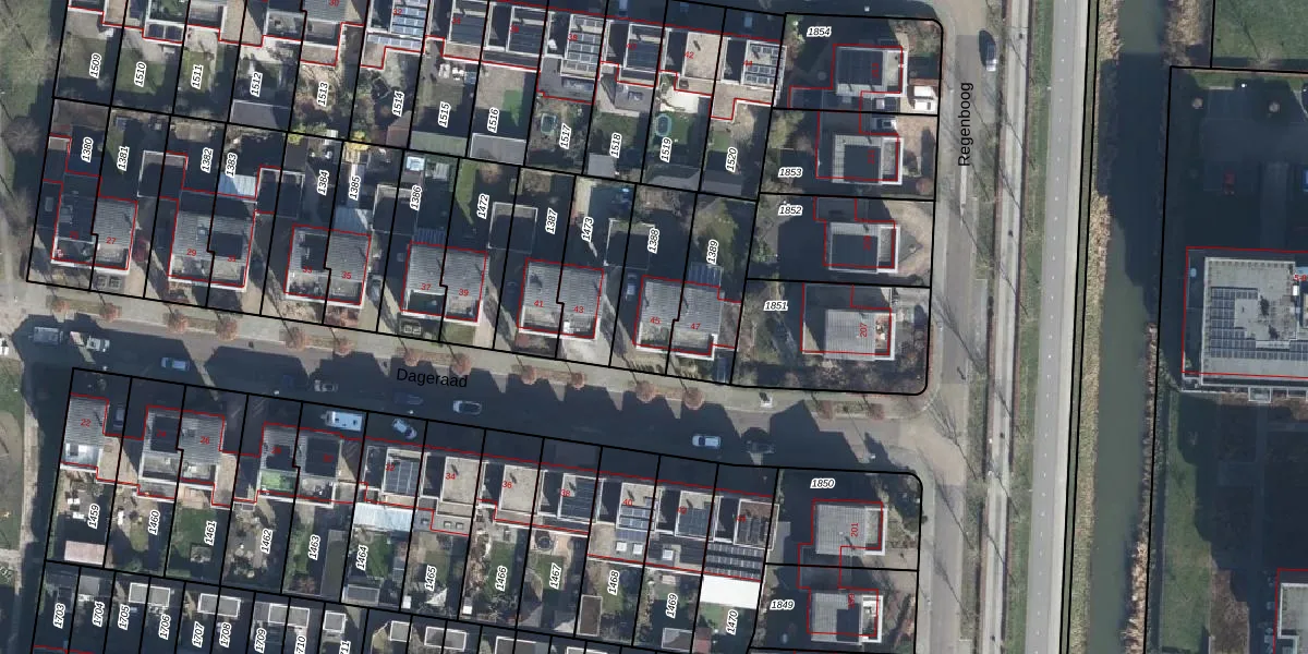 Gebruik de zoekbalk of klik op een perceel voor informatie over de adressen binnen dit perceel.