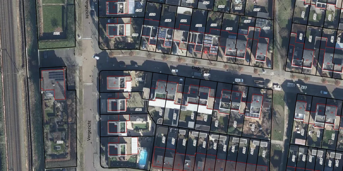 Het perceel waarop Dageraad 8 staat heeft een oppervlakte van 280 m². Dit is een middelgroot perceel. De perceeloppervlakte wordt geregistreerd door het Kadaster. Gedetailleerde informatie over de maten van dit perceel kunt u vinden in het rapport Kadastrale kaart met maatvoering van Dageraad 8.