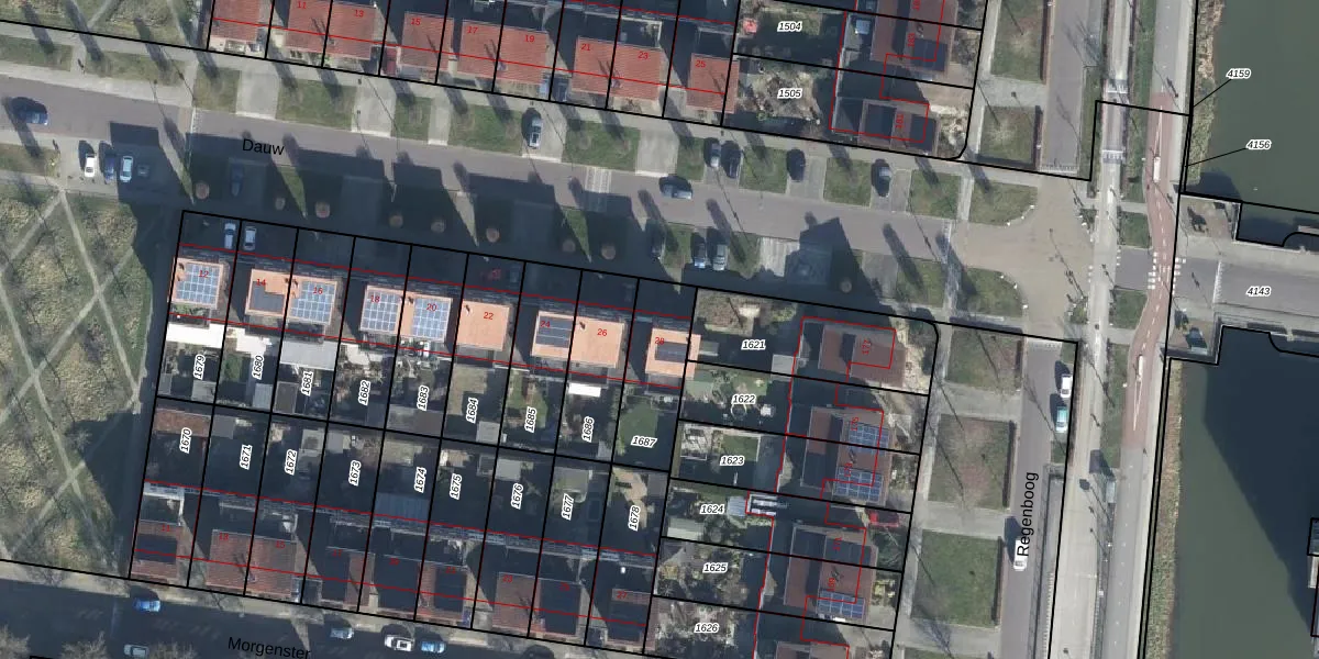 Gebruik de zoekbalk of klik op een perceel voor informatie over de adressen binnen dit perceel.