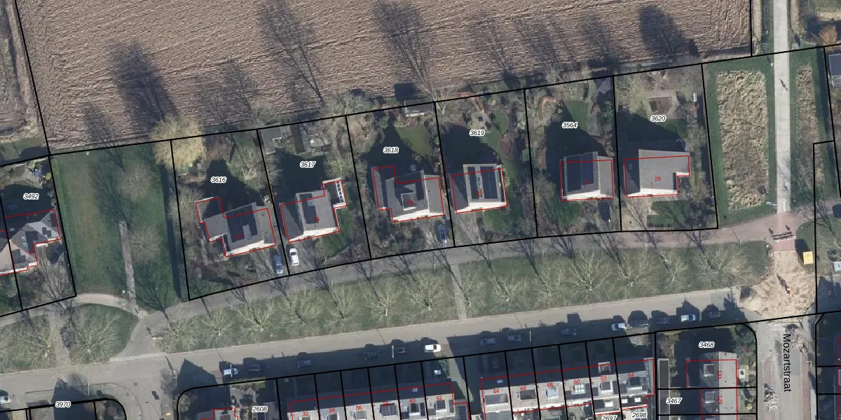 Gebruik de zoekbalk of klik op een perceel voor informatie over de adressen binnen dit perceel.
