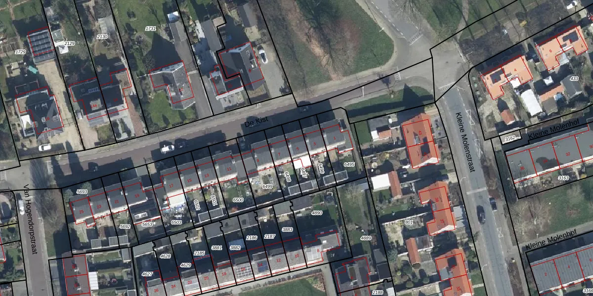 Gebruik de zoekbalk of klik op een perceel voor informatie over de adressen binnen dit perceel.