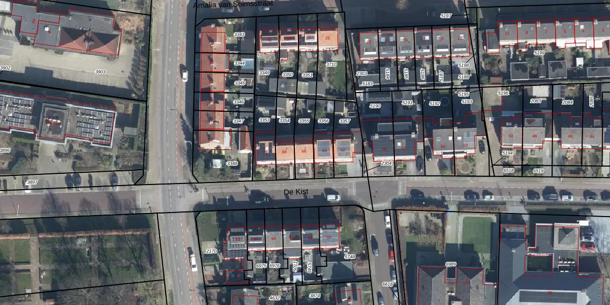 Gebruik de zoekbalk of klik op een perceel voor informatie over de adressen binnen dit perceel.