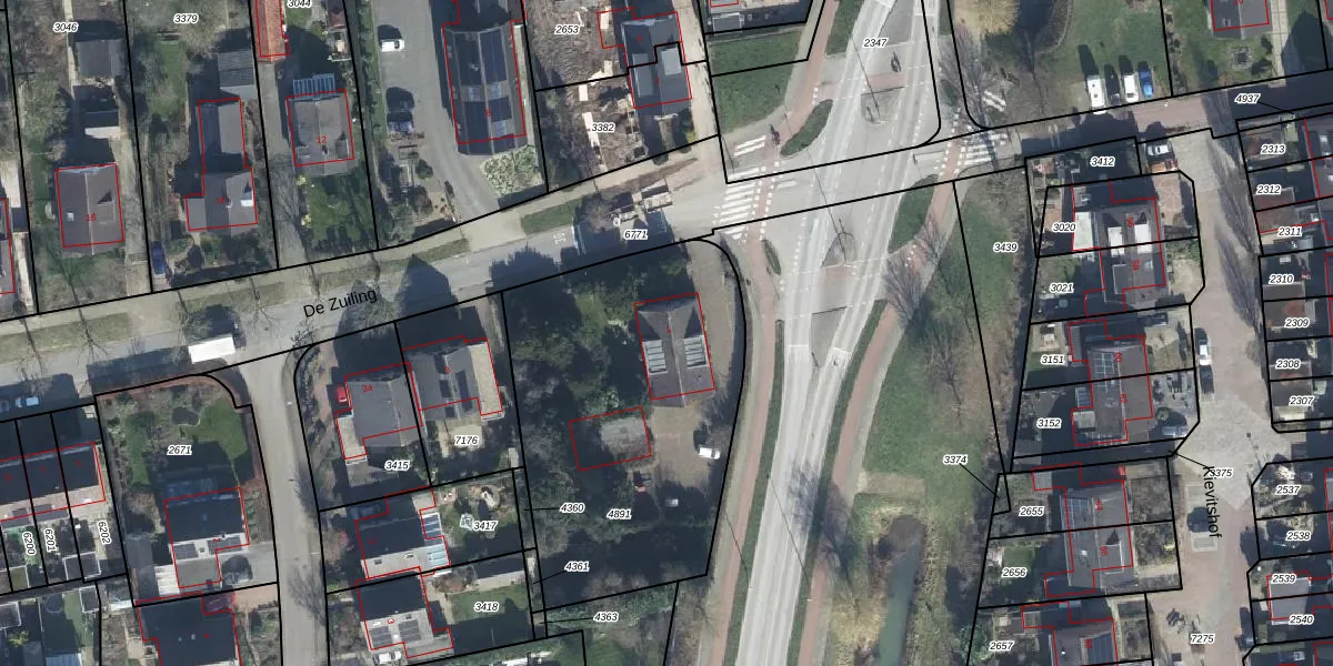 De Zuiling 1 is gelegen op kadastraal perceel ELS00K4891. Deze kadastrale aanduiding is uniek en wordt gebruikt door het Kadaster om eigendomsrechten en andere zakelijke rechten vast te leggen. Het perceel maakt onderdeel uit van de kadastrale gemeente Elst.
