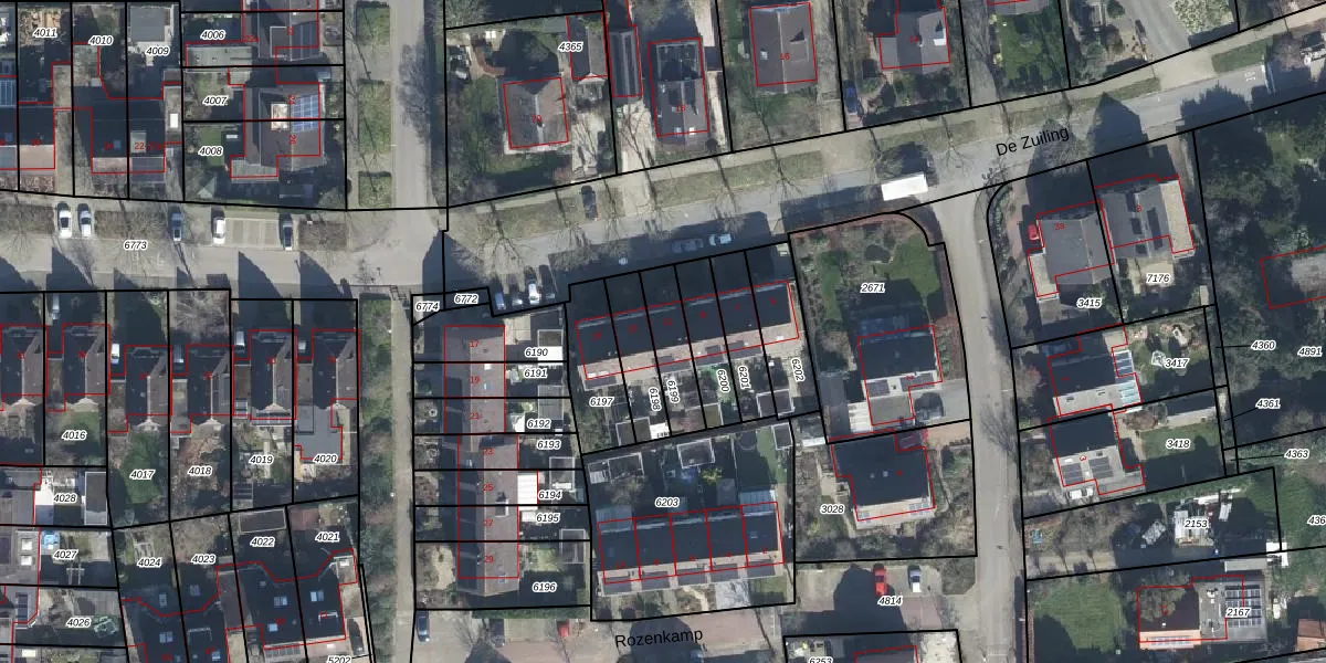 Gebruik de zoekbalk of klik op een perceel voor informatie over de adressen binnen dit perceel.